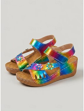 sandálias femininas de cunha azul com strass e padrão floral, design brilhante para festas no jardim, férias na praia e passeios de verão