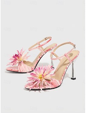 Sandálias femininas de salto alto com estampa floral rosa - ideais para jantares em resorts e coquetéis.