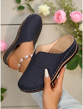 mules femininas de couro sintético – tamancos confortáveis com padrão de renda e respiráveis para jardinagem, uso doméstico e trajes casuais
