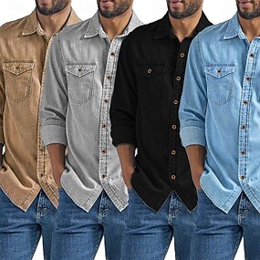 Homens Camisa Social Camisa casual Camisa de carga Preto Caqui Cinzento Azul Claro Manga Longa Tecido Colarinho de Camisa Casual Diário Botões Roupa Férias Moda Casual
