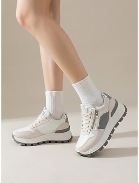 Tênis chunky feminino branco e cinza - tênis plataforma estilosos com zíper lateral para uso diário, trabalho casual e caminhadas urbanas.