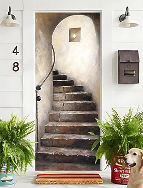 Tampa da porta Banners externos Escadaria de Pedra Vintage Rústico De Festa Quarto Sala de estar Porta de Entrada Varanda de parede Decorações de parede de porta de fundo