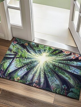 Tapete Doormat De Luz Do Sol Da Floresta Para Entrada Macio Antiderrapante Lavável Em Máquina Faux Cashmere Design De Cobertura De Árvore Natural Tapete Para Porta Da Frente Phoenix Redwoods por