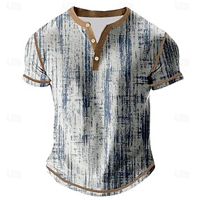 Homens Gráfico Abstrato Camisa Henley Manga Curta Diário Retro Vintage Clássico Esportes Casual Feriado Primavera Verão Todas as Estações Marron Escuro Roxo Escuro Preto Azul Escuro Henley Camiseta