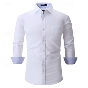 Homens Saia camisa de botão camisa de colarinho Camisa não de ferro Tecido Casamento Trabalho Branco Rosa Azul Marinha Azul Real Manga Longa Colarinho Todas as Estações Roupa