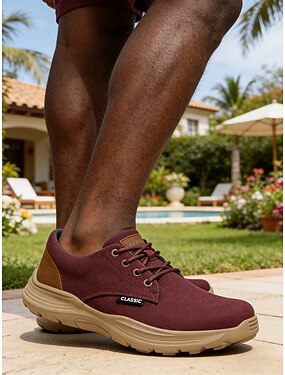 Tênis masculino de lona com cadarço, sola macia e acolchoada, resistente e ideal para caminhadas, viagens e atividades casuais de verão.