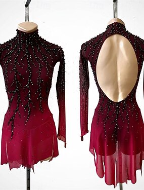 Vestidos para Patinação Artística Mulheres Patinação no Gelo Vestidos Vermelho Patchwork Sem costas Elastano Com Transparência Elasticidade Alta Treino Competição Roupa para Patinação Clássico