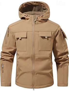 Homens Casaco exterior Jaqueta Softshell Jaqueta de Trilha Férias Diário A Prova de Vento À Prova-de-Água Bolsos Outono Inverno Tecido Côr Camuflagem Moda Clássico Com Capuz Padrão Cinzento Verde