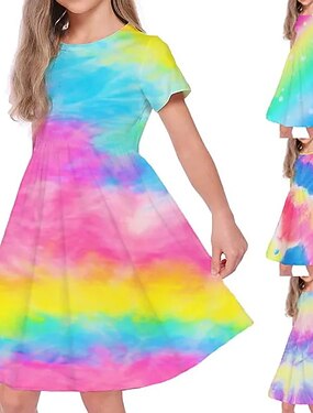 Meninas 3D Pavão Spot de Luz Multi-Colorida Vestido Sem Manga Verão Primavera Férias Diário Feriado Princesa Lindo Doce Infantil 4-12 anos Vestido casual Vestido A Line Altura dos Joelhos Normal