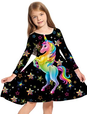 Para Meninas 3D Animal Unicórnio Camisa Manga Longa Impressão 3D Verão Primavera Outono Ativo Esportes Moda Infantil 3-12 anos Ao ar livre Diário Interior Normal