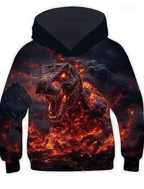 Para Meninos 3D Gráfico Dinossauro Moletom Pullover Manga Longa Impressão 3D Primavera Outono Esportes Moda Roupa de rua Infantil 4-12 anos Com Capuz Ao ar livre Casual Diário Normal