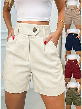 Mulheres Bermudas Atrevido chinês Férias Roupa de rua Casual Comprimento do joelho Cintura Média Tecido Com Cordão Bolsos Confortável Respirável Com Stretch Diário Ao ar livre Rua Cinza escuro Preto
