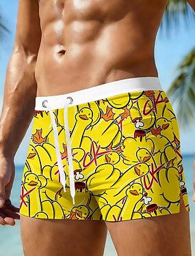 Homens Desenho Animado Engraçado Pato Shorts de Natação Bermuda de Surf Calção de Banho Cintura Média Havaiana férias na praia Com Cordão com forro de malha Cintura elástica Designer Roupa