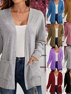 Mulheres Suéter Carregam Elegante Roupa de rua Casual Côr Sólida Decote V Bolsos Tricotado Manga Longa Tops longos Tricotar Diário Feriado Para Noite Preto Rosa Outono Inverno