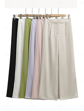 Mulheres Perna larga chinês Reto Elegante Férias Vintage Comprimento total Cintura Média Côr Sólida Patchwork Bolsos Confortável Sem Elasticidade Diário Casa Ao ar livre Rosa Claro Arroz Branco Preto