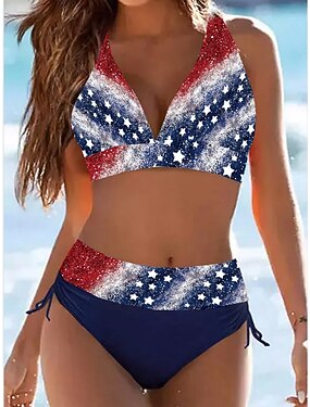 Mulheres Roupa de Banho Biquíni 2 partes Cavado roupa de banho Delgado Frente Única Férias Roupa de Praia Bandeira Halter pescoço Sem Manga Fatos de banho