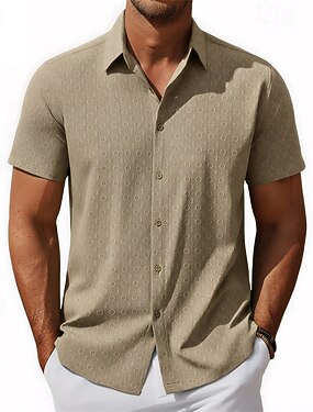 Homens Camisa Social Camisa casual camisa de botão Preto Branco Caqui Manga Curta Tecido Colarinho de Camisa Casual Diário Jacquard Roupa Elegante Moda Casual