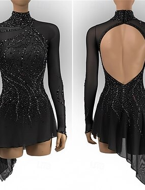 Vestidos para Patinação Artística Mulheres Patinação no Gelo Vestidos Preto Patchwork Sem costas Com Stretch Treino Competição Roupa para Patinação Clássico Cristal / Strass Manga Longa Patinação no