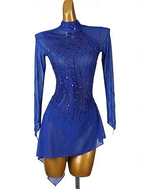 Vestidos para Patinação Artística Mulheres Para Meninas Patinação no Gelo Vestidos Azul Barra Assimétrica Com Transparência Elasticidade Alta Treino Competição Roupa para Patinação Clássico Cristal