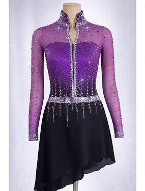 Vestidos para Patinação Artística Mulheres Patinação no Gelo Vestidos Violeta Preto Amarelo Patchwork Barra Assimétrica Elasticidade Alta Treino Competição Roupa para Patinação Clássico Cristal