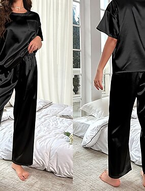 Mulheres Loungewear Conjunto de Pijama Moda Casual Macia Cor imaculada Patchwork Calça Casa Férias Manga Curta Gola Redonda Azul Preto Vinho Roxo Cáqui Verão Primavera Outono Normal