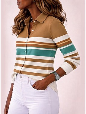 Mulheres Camisa Social Gráfico Geométrica Bloco de cor Vintage à moda Básico Manga Longa Bispo Colarinho de Camisa Tops regulares Casual Diário Feriado Marron Verão Primavera