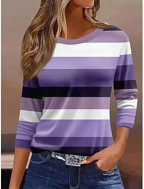 Camiseta Feminina Estampa Casual Tops Regulares Impressão Diária Azul Céu Azul Primavera Outono