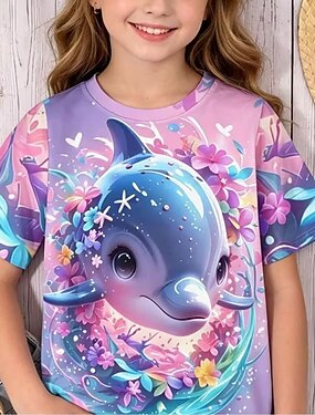 Para Meninas 3D Gráfico Animal Desenho Animado Camisa Camiseta Manga Curta Impressão 3D Verão Primavera Ativo Estilo bonito Infantil 5-12 anos Casual Diário Escola Normal