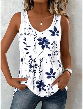 Mulheres Malha Íntima Imprimir Floral Gráfico Plantas Vintage à moda Clássico Sem Manga Decote U Tops longos Diário Para Noite Final de semana Branco Vermelho Verde Verão Primavera