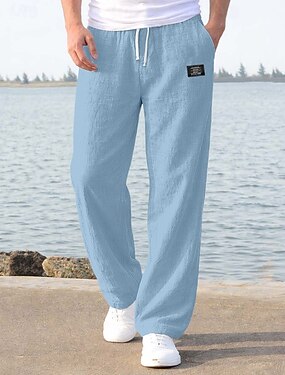Homens Calças de linho Calças Calça verão Calças largas Com Cordão Cintura elástica Perna reta Tecido Conforto Respirável Comprimento total Diário Feriado Praia Férias Moda Azul denim Verde Claro Sem