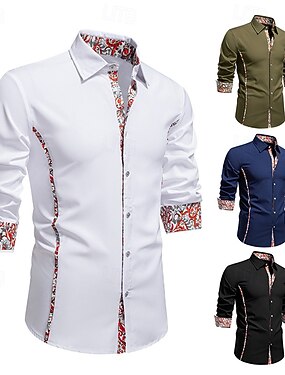 Homens Camisa Social Camisa casual camisa de botão Preto Branco Azul Verde Manga Longa Estampado Cashemere Tecido Lapela Férias Casual Bloco de cor Roupa Moda Casual