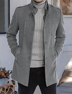 Homens Peacoat Casaco impermeável Férias Diário Outono Inverno Poliéster A Prova de Vento agasalhos Roupa Moda Clássico Tecido Bolsos Colarinho Chinês Não Trespassado