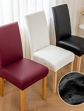 Capa de couro para cadeira, impermeável, resistente a óleo, antiderrapante, espessa e de cor sólida, ideal para proteção e fácil manutenção em salas de jantar residenciais.