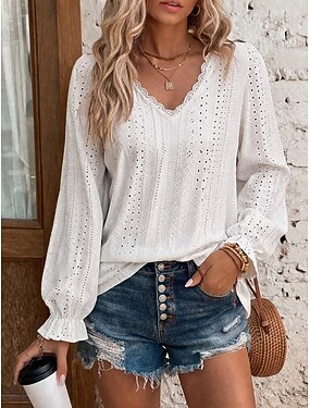 Mulheres Topo de ilhó Camiseta Pointelle Textura Gráfico Plantas à moda Sensual Clássico Sem Manga Manga Longa Decote V Tops regulares Casual Diário Praia Branco Rosa Verde Escuro Roxo Verão