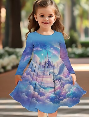 Meninas 3D Gráfico Unicórnio Vestido Manga Longa Verão Primavera Férias Diário Feriado Princesa Lindo Doce Infantil 4-12 anos Vestido casual Vestido A Line Altura dos Joelhos Normal