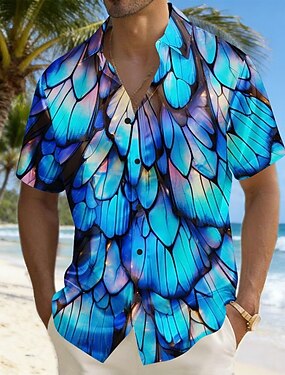 Homens Borboleta Asas Abstrato Camisa Social Blusa de cetim Saia Manga Curta Moda Casual Diário Férias Verão Primavera Aberto para a Lateral Impressão 3D Camisas de botões Azul