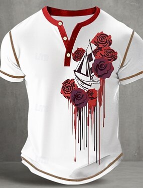Homens Respingos de sangue Manchas de sangue Veleiro Camisa Henley Camisetas Manga Curta Vintage Moda Designer Ao ar livre Casual Diário Primavera & Outono Branco Henley Camiseta Henley