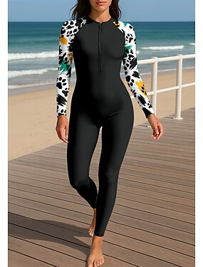 Mulheres Anti Atrito Roupa de banho Boyleg Floral Zip Up Bojo Removível Zíper Frontal Proteção Solar UV UPF50+ Ultra Leve (UL) Manga Longa Roupa de Banho Anti Atrito Surfe Praia Esportes Aquáticos