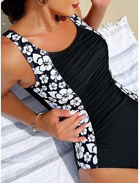 Maiô Feminino de Uma Peça Emagrecido Ruched Monokini Calcinhas Controle de Barriga Cintura Alta Slim Costas Descobertas Roupas de Praia para Férias Floral Gráfico U Neck Sem Mangas
