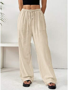 Mulheres Calças Calça casual Calça verão Calças de praia Férias Moda Casual Diário Comprimento total Cintura Alta Côr Sólida Tecido Com Cordão Bolsos Perna larga Conforto Macio Respirável Sem
