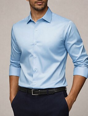 Homens Camisa Social Blusa de cetim Saia camisa de botão Tecido Casamento Formal Azul Claro Preto Branco Verde Manga Longa Lapela Todas as Estações Roupa Puro