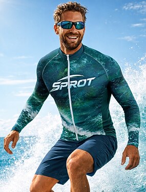Homens Anti Atrito Camisa de Natação Geométrica Gradiente Pontos UPF50+ Proteção UV Secagem Rápida Manga Longa Roupa de Banho Anti Atrito Surfe Canoagem Praia Verão