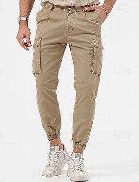 Homens Calças Cargo Corredor Calças Botões Bolso multi Punho com Elástico Tecido Vestível Ao ar livre Diário Acampar e Caminhar Moda Clássico Preto Verde Tropa