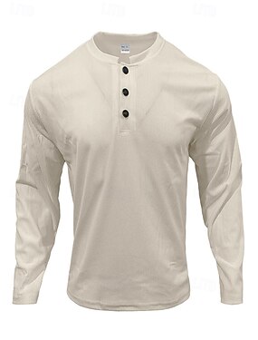 Homens Camisa Henley Camisa de manga longa Tecido Henley Rua Esportes Manga Longa Botão para baixo Roupa Designer Básico Casual Confortável