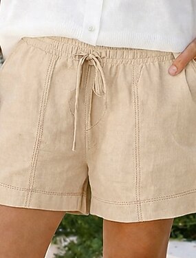 Mulheres Linho de algodão sintético Calção Shorts de verão Shorts de praia Férias Moda Casual Diário Curto Cintura Alta Côr Sólida Tecido Com Cordão Patchwork Cintura elástica Conforto Macio