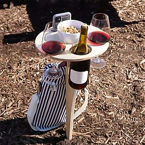 mesa de vinho ao ar livre, estaca dobrável de mesa de vinho, mesa de piquenique de vinho ao ar livre, taças de vinho portáteis e porta-garrafas, bandeja de petiscos e queijos para acampamento no quintal, praia, prateleira de madeira para vinhos