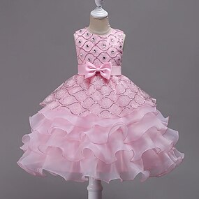 Infantil Para Meninas Vestido Vestido de festa Côr Sólida Sem Manga Formal Espetáculo Ocasião Especial Nó de gravata Moda Diário Princesa Poliéster Longo Vestido de festa Vestido Swing Vestido De Tule