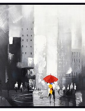 Arte abstrata em tela pintada à mão com mulher e guarda-chuva amarelo, decoração para quarto de menina, pôster, arte de parede em tela para decoração de casa.