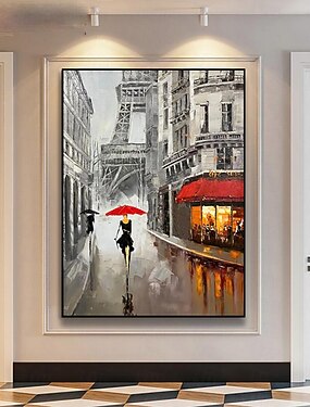 pintura a óleo artesanal lona arte da parede decoração retro cena de rua torre eiffel faca desenho arte da paisagem arquitetônica para decoração de casa pintura sem moldura enrolada não esticada
