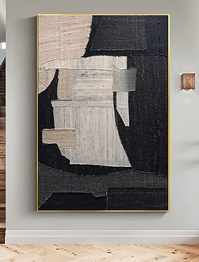 Pintura a óleo preta texturizada 3d arte de parede artesanal pintura texturizada em preto e branco pintura de arte abstrata pintura em preto e branco imagem de arte de parede pronta para pendurar ou